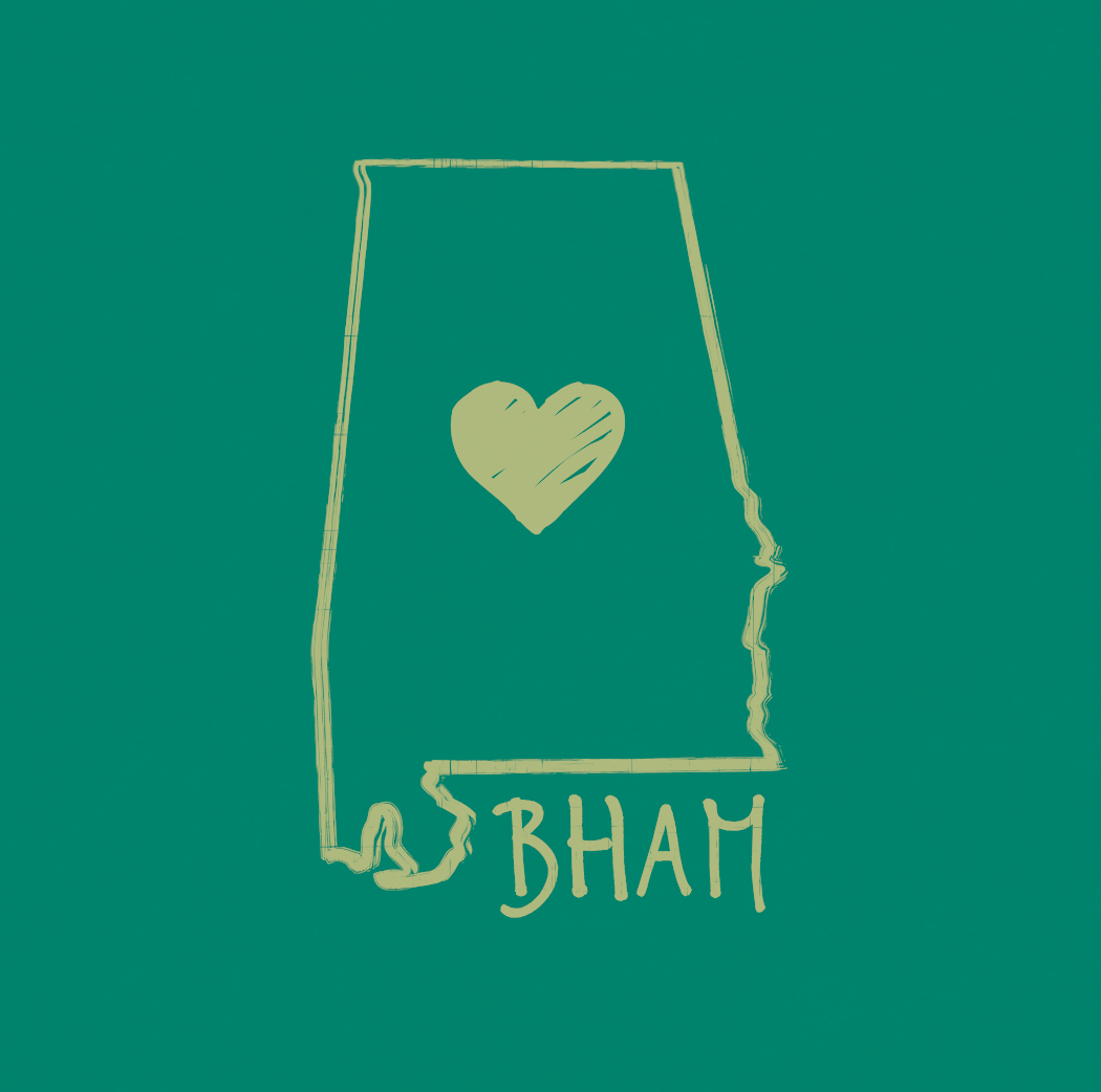 Show you B'Ham pride! This design really puts the heart in the Heart of Dixie with a simple heart shown over the Magic City.