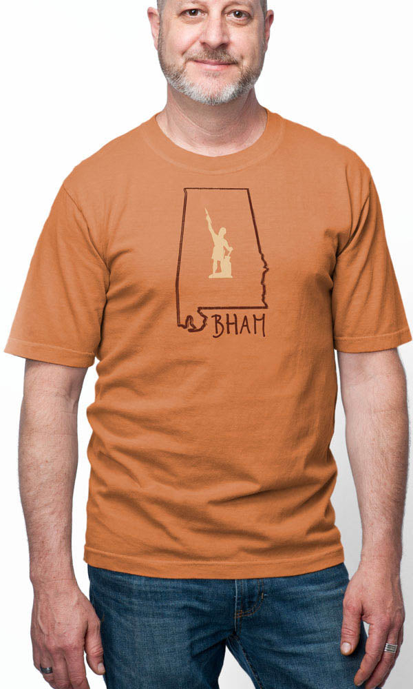 Let your Magic City pride shine in this Southern Designs Unisex Tee saluting Birmingham's best known landmark, the original Iron Man. Hands up for Birmingham and Vulcan!