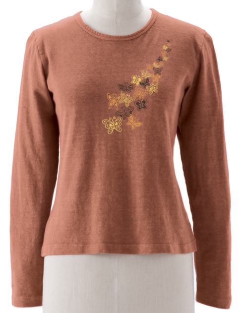 Flutter Flies Imprinted on Made in USA Hemp Long Sleeve Ladies Top