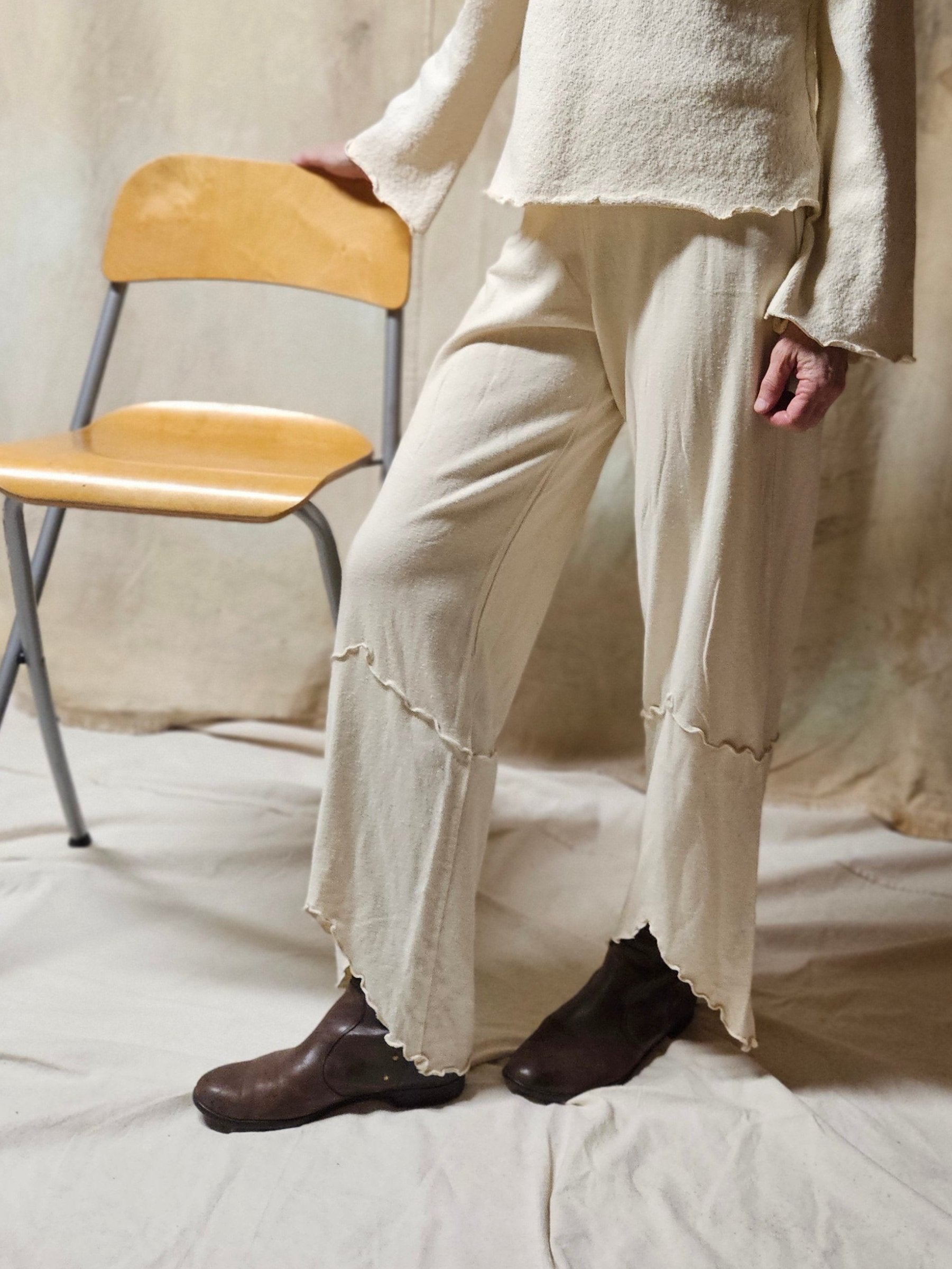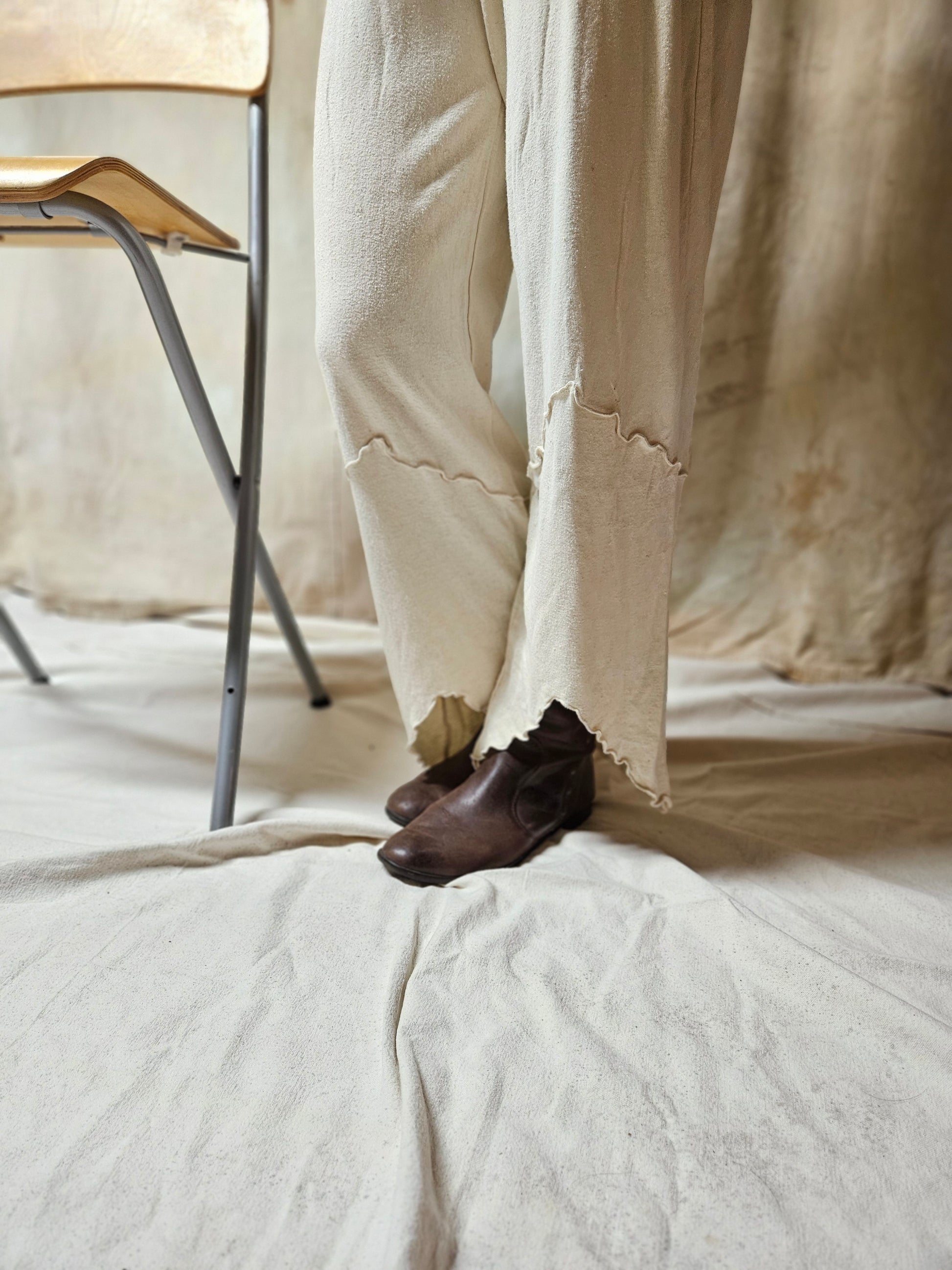 Crafted from the finest hemp fibers, our hemp pants offer superior durability and comfort. With accented seams and an elastic waistband, these pants provide a stylish and comfortable fit. The asymmetrical, scalloped hem adds a touch of unique style to your wardrobe.