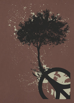 Peace Tree Design Imprinted on Men's Long Sleeve Clay Dyed Organic Cotton Tee