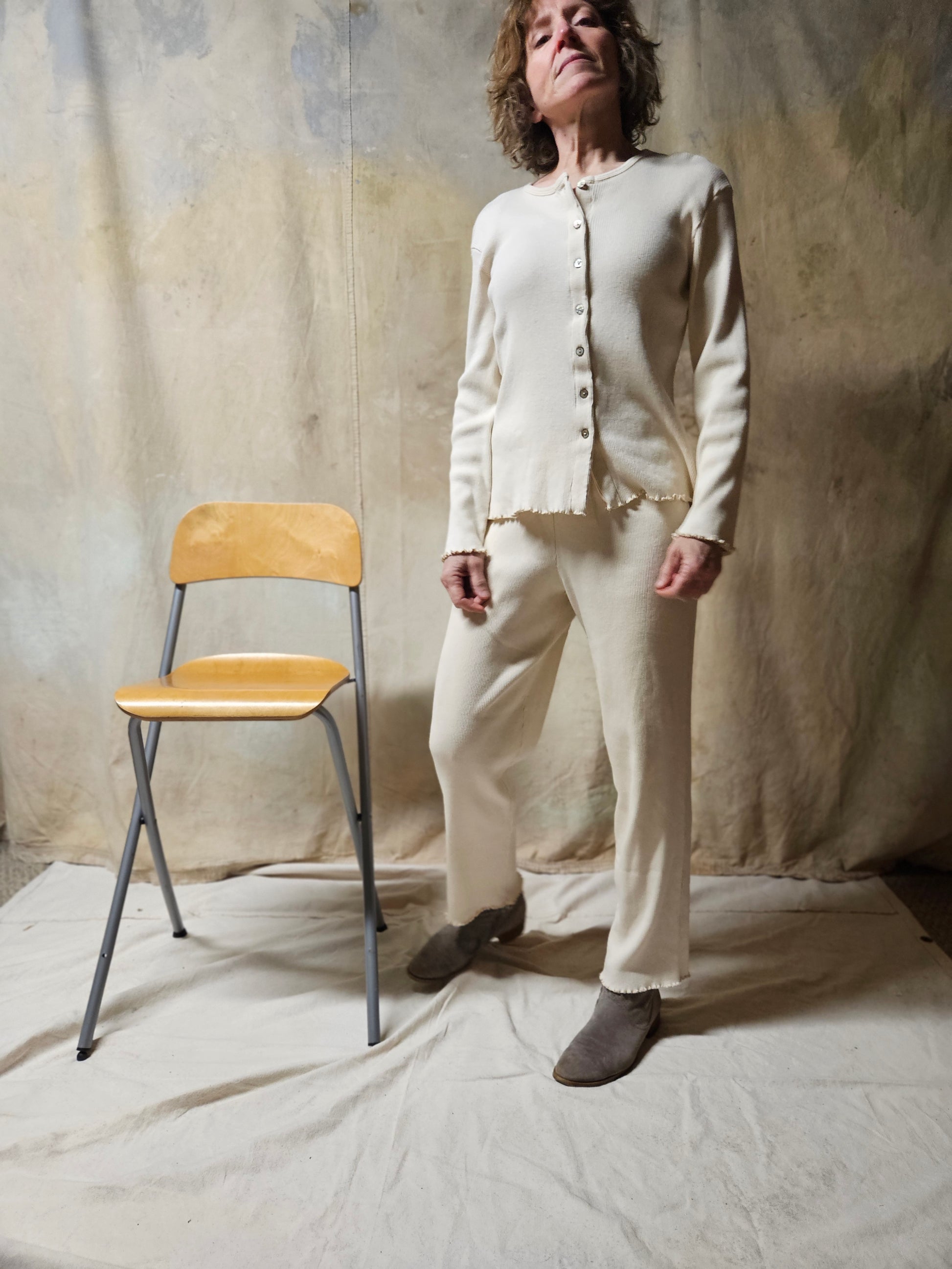 Crafted from soft and sustainable organic cotton, these ribbed pants feature an elastic waistband for a comfortable and versatile fit.