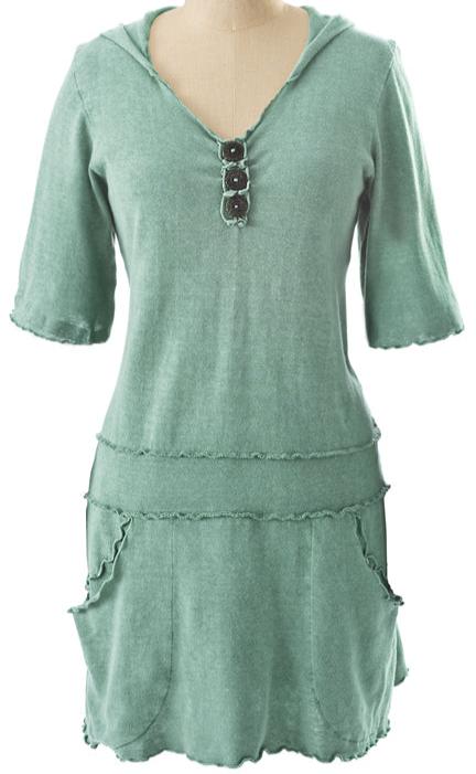 Expertly crafted for comfort and sustainability, the Sadie Top is made from a blend of pre shrunk organic cotton and hemp. Featuring a practical hood, elbow length sleeves, a decorative three button faux placket, reversed seamed band at the hips, functional pockets and lettuce edging. It can be worn as a tunic with leggings or skinny jeans, or as a dress with tights.